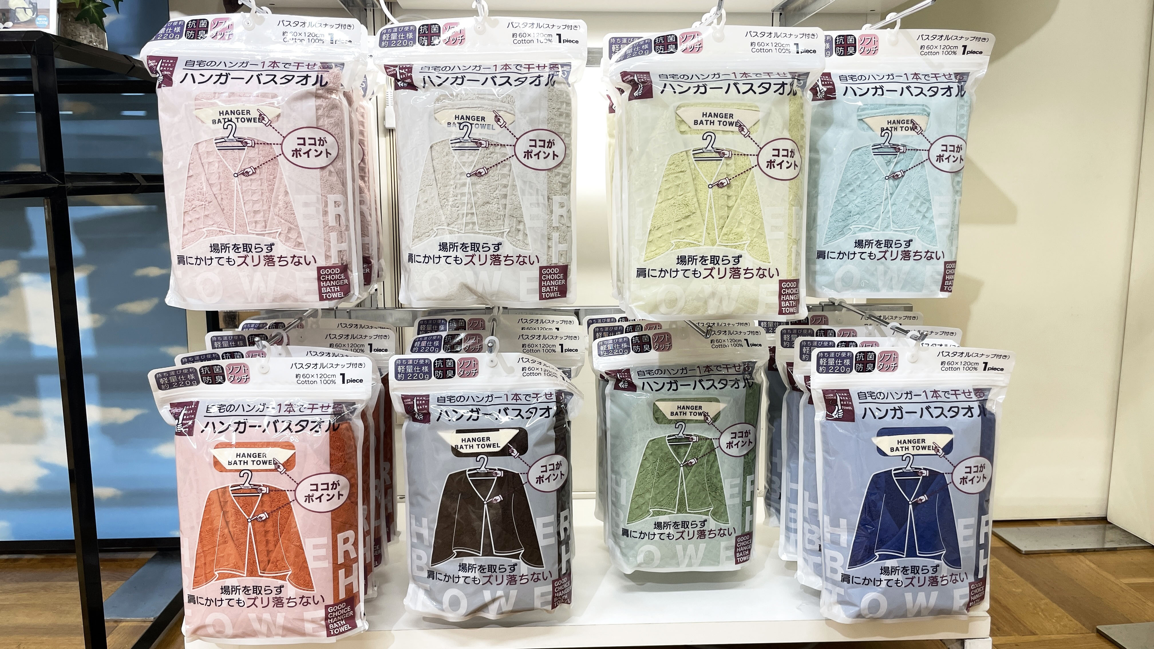そうです!干すと大きくて邪魔だったバスタオルが自宅のハンガー1本で1、2、3、で簡単に干せるんです♫