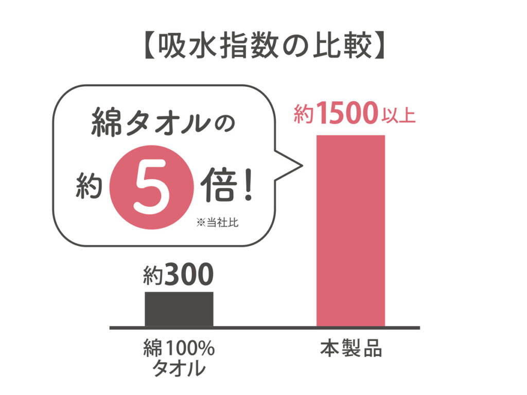 高吸水の基準値は800ですが、マイクロde吸水タオルは約1500と